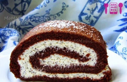 Derzeit bin ich auf Biskuitrolle Trip und habe schon wieder eine gebacken ♥. Diesmal mit Schokolade und Blaumohn...