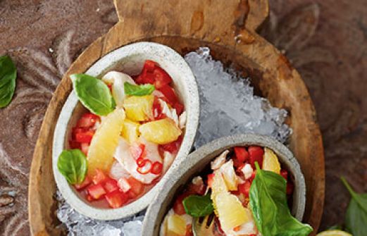 Kabeljau-Ceviche mit Tomatensalsa und Zitronenstückchen Zutaten 300 g Kabeljaufilet (ohne Haut) 1–2 Limetten 2 Tomaten 1 kleine Chilischote 1 frische Knoblauchzehe 1 TL Meersalz schwarzer Pfeffer 2 EL kalt gepresstes Rapsöl 1/2-1 Zitrone (z. B. Amalfi-Zitrone) 8 Basilikumb [...]