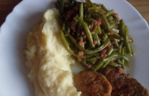 Zutaten für Personen Rezept mit Bild: Lende mit frischen grünen Bohnen Bild einstellen 1 Stk. Schweinelende 1 kg Grüne Bohnen 250 gr. Schinkenwürfel 250 gr. Butter Olivenöl 3 Stk. Knoblauch frisc [...]