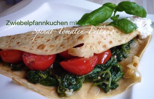 Gefüllte Pfannkuchen sind doch immer wieder eine feine Sache! Heute zeige ich euch ein Rezept für Zwiebelpfannkuchen mit Spinat-Tomaten-Füllung . Da Prince Charming kein Zwiebelfreund ist und ich keine Fertigpackungen kaufe, musste ich das Rezept etwas abwandeln.