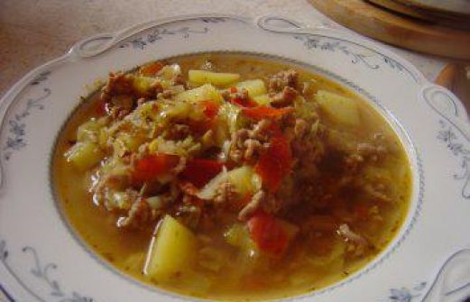 Zutaten für Personen Rezept mit Bild: Spitzkohl-Eintopf mit Hackfleisch... Bild einstellen 500 gr. Hackfleisch, halb und halb 1 kleiner Spitzkohl gr. Kartoffeln 5 reife Tomaten 1 geh. Eßl. Rinderbrühe [...]