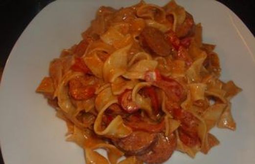 Zutaten für Personen Rezept mit Bild: Nudelpfanne Ruck-Zuck Bild einstellen 250 Gramm Bandnudeln 1 Zwiebel 2 Cabanossi 1 Glas Letcho 150 Gramm Kråuterfrischkåse Salz Pfeffer Paprikapulve [...]