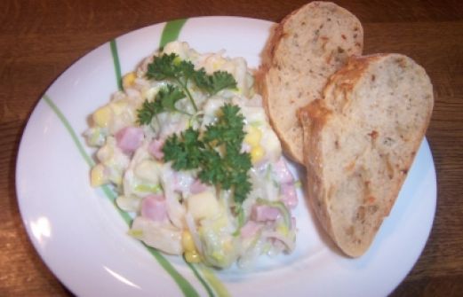 Zutaten für Personen Rezept mit Bild: Kurschatten-Salat Bild einstellen 1 Dose Ananasstücke 340g Abtropfgewicht 1 Dose Mais 285 g Abtropfgewicht 1 Glas Selleriesalat in Stiften 190g Abtropfgewicht 1 Stange [...]
