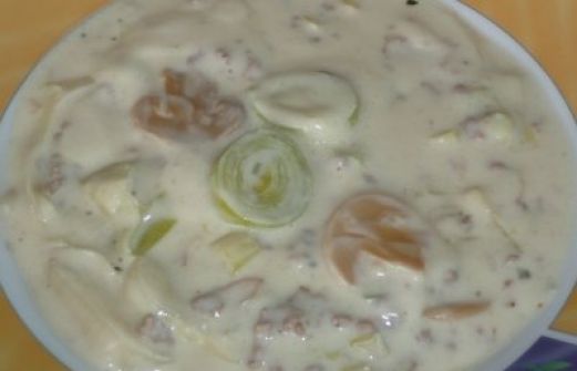 Zutaten für Personen Rezept mit Bild: Suppe: Lauch - Käsesuppe Bild einstellen 3 Stangen Lauch/Porree 500 g Hackfleisch gemischt 2 Gläser Champignons Abtropfgewicht 170g 2 Tüten Champignon-Cremesuppe j [...]