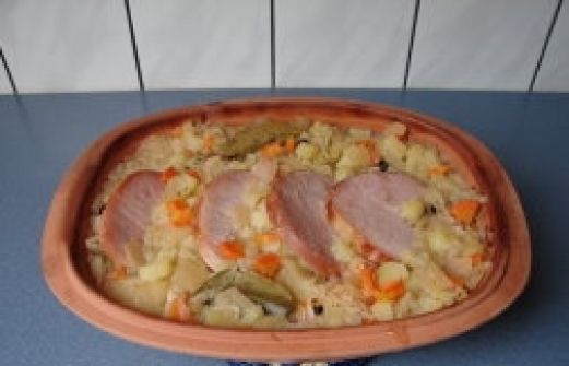Zutaten für Personen Bild einstellen 810 g Sauerkraut = 1 große Dose 2 Äpfel mittelgroß 2 Zwiebeln 3 Karotten 3 Kartoffeln 2 Lorbeerblätter 5 Wacholderbeeren 0.5 Liter Fleischbrühe 4 Scheiben gräuchertes Kass [...]