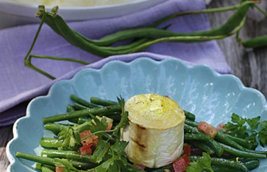 Bohnensalat mit Ofenkäse Zutaten 500 g grüne Bohnen 1 Bund Bohnenkraut Salz 1/2 Bio-Zitrone 2 Frühlingszwiebeln 1 Tomate 4 Stängel Petersilie 1 TL Honigsenf Pfeffer 5 EL Olivenöl 4 kleine runde Ziegenkäse (je etwa 50 g) oder 200 g Schafskäse (Feta) 500 g grüne [...]