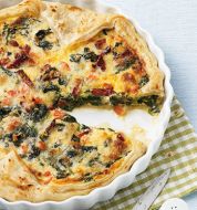Zwiebel-Speck-Quiche Zutaten 700 g rote oder weiße Zwiebeln 2 Knoblauchzehen 150 g durchwachsener Räucherspeck 3 Zweige Salbei (ca. 30 Blättchen) 1 EL Olivenöl 1/2-1 TL Chiliflocken Salz 300 g saure Sahne 3 Eier (M) 150 g frisch geriebener Bergkäse 125 g Magerquark 1 T [...]