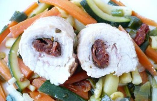 Zutaten für Personen Rezept mit Bild: Putenröllchen auf Zucchini - Möhren - Gemüse Bild einstellen 4 Möhren 2 Zucchini 5 Frühlingszwiebeln 8 kleine Putenschnitzel 8 Stiele Bärlauch 30 g Getroc [...]