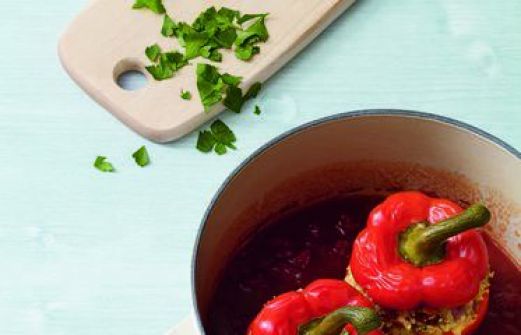 Gefüllte Paprika mit Couscous Zutaten 3 Frühlingszwiebeln 50 g getrocknete Tomaten 3 Knoblauchzehen 100 g Instant-Couscous 1 Pck. TK-Zwiebel-Duo 2 EL Zitronensaft 2 2 1/2 EL Ahornsirup oder Agavendicksaft Kräutersalz Pfeffer 2 rote Paprikaschoten 1 Dose stückige Tomaten [...]