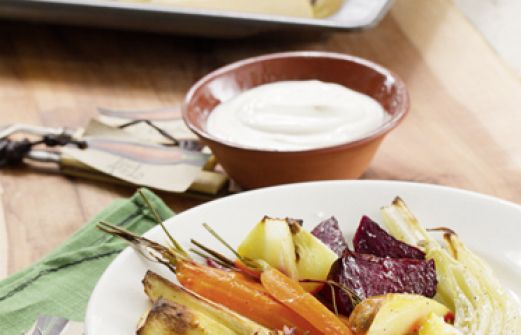 Ofengemüse mit Zitronenöl Zutaten 500 g vorwiegend festkochende Kartoffeln 3 Rote Beten 250 g Möhren 250 g Petersilienwurzeln oder Pastinaken 1 Kohlrabi 3 Zwiebeln 1 Knolle Fenchel 1 Zitrone 6 EL Olivenöl Salz Pfeffer 3 Zweige Rosmarin oder Salbei 250 g griechischer [...]