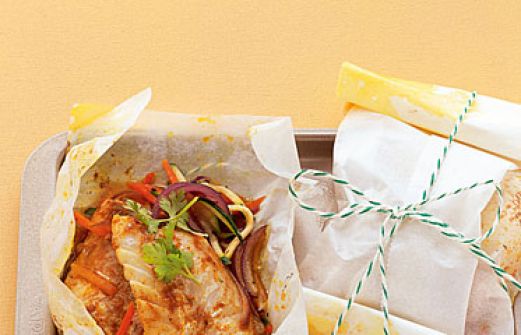 Rotbarsch-Päckchen mit Gemüse Zutaten 1 rote Zwiebel 100 g Zucchini 100 g Möhre 2 Rotbarschfilets (à 180 g) Salz schwarzer Pfeffer 4 EL Grapefruitsaft 1/2 TL Currypulver 1/2 Bund Koriander 2 Blätter Backpapier (40 x 40 cm) Öl zum Fetten 1 rote Zwiebel , 100 g [...]