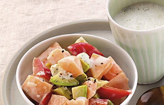 Avocado-Melonen-Salat Zutaten 1/2 Galia-Melone 1 Avocado 1 rote Paprikaschote 1 Zwiebel 1 EL Apfelessig 1 EL Walnussöl 50 g fettarmer Frischkäse 50 g Salatcreme Salz Pfeffer aus der Mühle Zucker 1/2 Galia-Melone , 1 Avocado , 1 rote Paprikaschote , 1 [...]