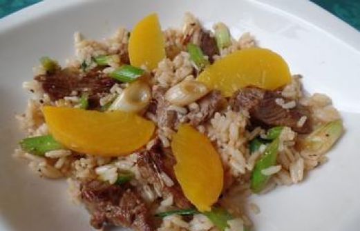 Zutaten für Personen Bild einstellen 250 gr. Basmati-Reis Salz 1 Dose Pfirsich Konserve abgetropft 1 Bund Lauchzwiebeln frisch 400 gr. Rinderhüftsteak 2 EL Öl 100 ml Brühe instant 2 EL Chilisoße Süß-Sauer P [...]