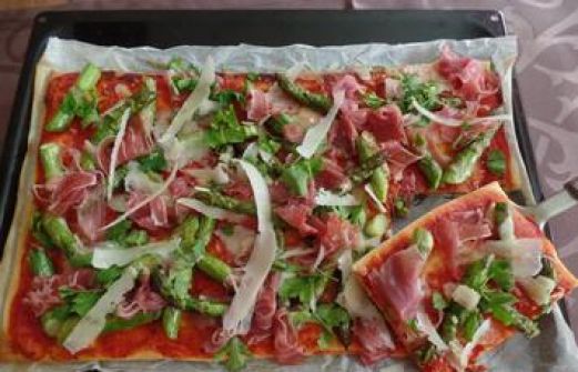 Zutaten für Personen Rezept mit Bild: Pizza mit grünen Spargel und Prosciutto-Schinken Bild einstellen 1 Pizzateig Fertigprodukt 800 gr. Spargel grün frisch 2 EL Butter 100 gr. Parmesan gehobelt 80 gr. P [...]