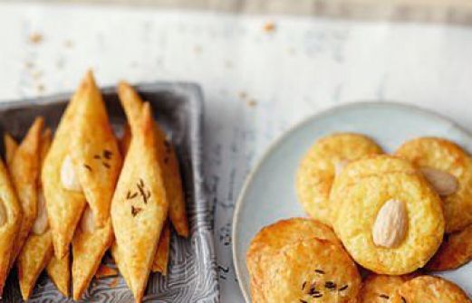 Käsegebäck Zutaten 150 g Mehl 125 g weiche Butter 125 g geriebener Bergkäse 1/2 TL Salz 1/3 TL Currypulver 1 Ei Mehl zum Arbeiten Kümmelsamen und Mandelhälften zum Garnieren 1 rautenförmiger Ausstecher (4 cm ∅) 1 runder Ausstecher (4 cm ∅) 150 g Mehl , 125 g [...]