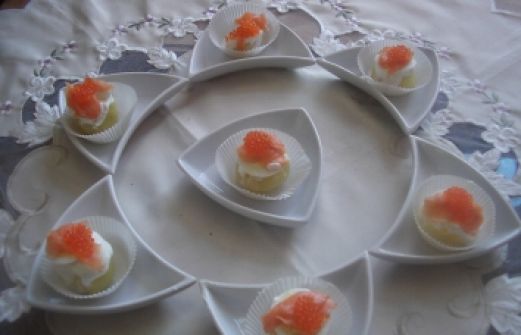 Zutaten für Personen Rezept mit Bild: Kartöffelchen mit Lachs & Kaviar Bild einstellen 8 kleine Kartöffelchen 2 hartgekochte Eier 1 Becher Joghurt oder Schmand 1 Päckchen Quark Salz und Pfeffer 1 Pac [...]