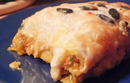 Zutaten (4Personen): 4 große Lasagneplatten (oder 12 "normale) 500g Kürbis (hier Hokaido) 1 Zwiebel 2 Knoblauchzehen 300 ml Bechamelsauce je 1 EL Rosmarin, Thymian, Oregano 100 ml fruchtiger Rotwein 150 ml Wasser Salz Pfeffer Muskatnuss 4 EL Kürbiskerne 150 gerie [...]