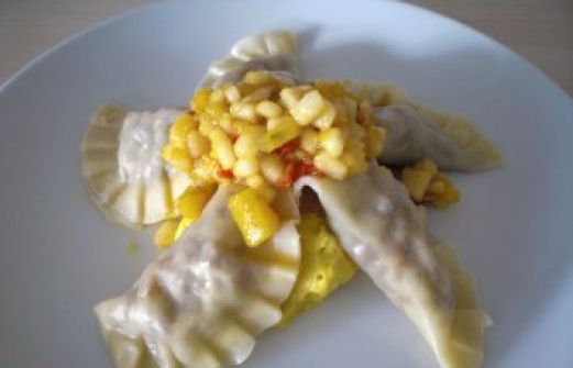 Zutaten für Personen Rezept mit Bild: Ravioli aus Rotweinrind auf Amaretto-Kürbis-Püree mit Birnen-Sambal Bild einstellen RAVIOLI 300 g Rinderhackfleisch 1 Zwiebel 1 Karotte 1 Knoblauchzehe 3 EL [...]
