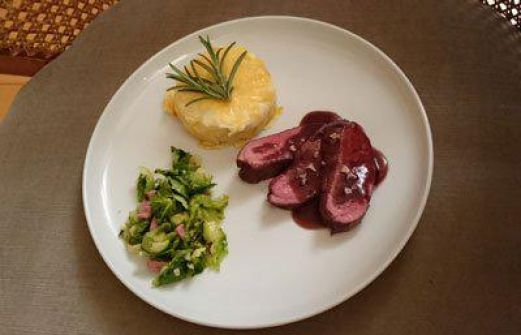 Zutaten für Personen Bild einstellen Rehrücken 4 EL Öl 30 g Butter 1.2 kg Rehrücken 4 Stk. Lorbeerblätter 1 Stk. Rosmarin Salz und Pfeffer Rotweinjus 1 kg Kalbsknochen 2 Liter Rotwein 3 EL Buttersc [...]