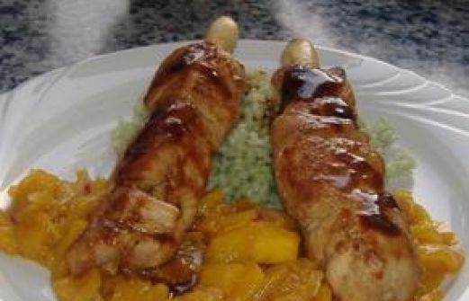 Zutaten für Personen Rezept mit Bild: Mariniertes Hähnchenbrustfilet mit grünem Reis und Mango-Zwiebel-Chutney Bild einstellen 360 gr. Hähnchenbrustfilet in cm.Würfel geschnitten 4 Stk. Zitronengrasstangen 80 m [...]
