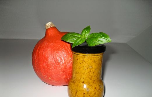 Ihr braucht für 2 Gläser: 1/2 Hokkadio-Kürbis (Oranger Knirps) ca. 1.5 dl Olivenöl 1 EL Hefeflocken 40 g gemahlene Haselnüsse 20 g Baumnüsse Salz, Pfeffer, etwas getrockneter Knoblauch Den Kürbis von den Kernen befreien, in Spalten schneiden, mit etwas Olivenöl beträufeln [...]