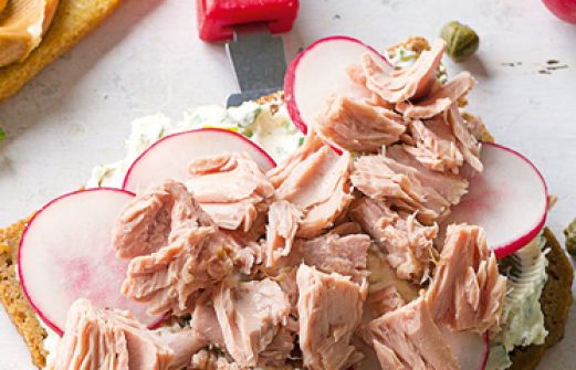 Thunfisch-Schnitten Zutaten 75 g Frischkäse (13 % Fett) Salz Pfeffer 2 TL Zitronensaft 2 TL kleine Kapern (nach Belieben) 5 Stängel Petersilie 4 Scheiben glutenfreies kräftiges Brot (z.B. Bauernbrot, Sonneblumen-Teff-Brot) 4 Radieschen 1 Dose Thunfisch naturell (ca. 60 g Ab [...]