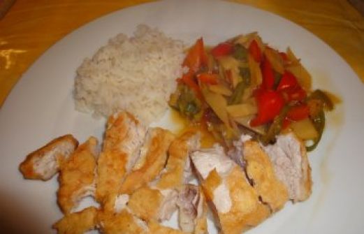 Zutaten für Personen Rezept mit Bild: Gebackenes Hühnerfleisch mit Gemüse und Reis Bild einstellen 4 Hähnchenbrustfilets 2 Eiweiß 50 g Stärke Salz, Pfeffer 1 TL Reiswein 2 Paprikaschoten 90 g [...]