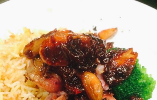 Das Fleisch wird Vakuum- verpackt über 2h bei 60º und 100% Luftfeuchtigkeit im Dampfgarer vorgegart. Aus dem Vakuumbeutel nehmen, salzen und in Olivenöl von beiden Seiten anbraten. Auf ein Backblech geben, Zehen von insgesamt 1Knolle Knoblauch, einige Thymianzweige dazu geben, mit frisch gestos [...]