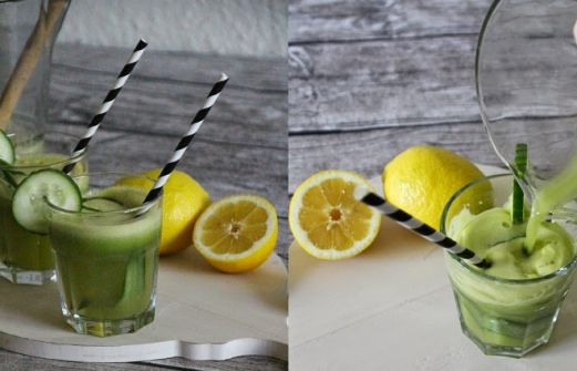 Wer hat Lust auf eine Runde frischen Gurken-Apfelsaft mit Zitrone und Ingwer ?