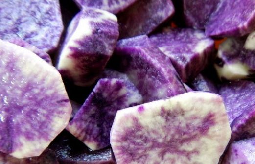 Blaue Kartoffeln in rohem Zustand. Jede sieht ein wenig anders aus.