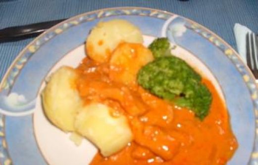 Zutaten für Personen Rezept mit Bild: Geschnetzeltes in Paprika-Tomatensoße Bild einstellen 600 gr. Schweinefleisch 2 EL Mehl 4 Zwiebeln grob geschnitten 6 Jalapeño 1 EL Paprika edelsüß 1 T [...]