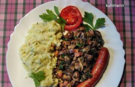Zutaten für Personen Bild einstellen 20 Gramm Öl : Sonne+Olive 140 Gramm 2 St. Berliner Knacker - Rest im Kühli 60 Gramm Schinkenspeck 1 Stück Zwiebel rot, mittel 400 Gramm Champignons braun, frisch Prise Pilz-Würzer [...]