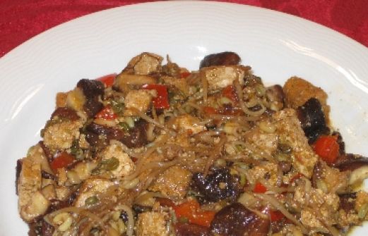 Japanisches Gemüse mit Tofu Zutaten 400 g Shitakepilze 1 rote Paprika 100 g Sojasprossen 2 TL Rapsöl 50 ml Sherry 2 EL Sojasauce 1 TL Zucker 100 g Tofu rosso 400 g Shitakepilze , 1 rote Paprika , 100 g Sojasprossen , 2 TL Rapsöl , 50 ml Sherry , 2 E [...]
