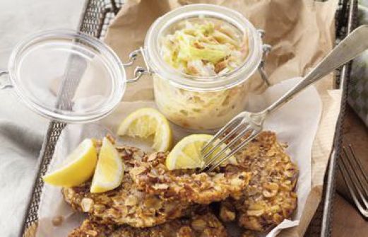 Nuss-Schnitzel mit Cole Slaw Zutaten 1 Spitzkohl (ca. 700 g) 2 Möhren 1 rote Zwiebel 1 Apfel 50 g Mayonnaise 100 g Naturjoghurt 100 ml Buttermilch 3-4 TL Apfelessig 1 TL geriebener Meerrettich (aus dem Glas) Salz Pfeffer 4 dünne Schweineschnitzel (à ca. 100 g) 1 Ei ca [...]