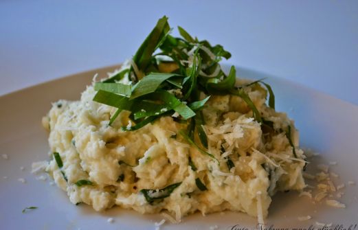 Mein beliebtes Blumenkohlpüree heute mal anders :-) Ich hab es diesmal mit Bärlauch und Parmesan verfeinert. So einfach, so schnell, so gut! Schmeckt wunderbar zu Fleisch, Fisch oder gebratenem Tofu. Zutaten für 3 Personen: 1 mittelgroßer Blumenkohl 1 kleine Tasse Gemüsebrühe 3 EL C [...]
