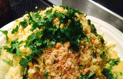 Blumenkohl in Salzwasser 15- 20min weich kochen. In der Zwischenzeit 2 Eier 10min hart kochen. 200ml Hühnerbrühe, 200ml Kokosmilch und 1El Aprikosenmarmelade miteinander verrühren und 6-7min [...]
