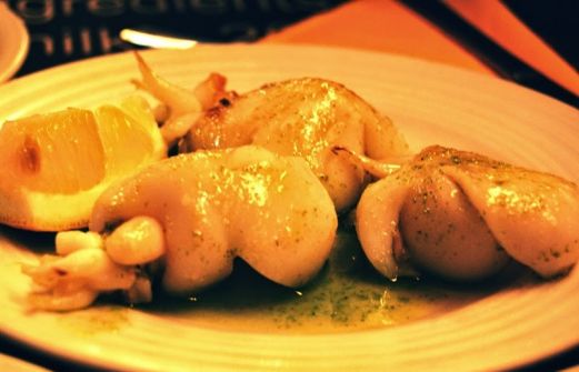Zutaten: 1 große Tintenfischtube küchenfertig gehäutet 3 Esslöffel Frittierfett 2 Knoblauchzehen Salz aus der Mühle Zubereitung: Die Tintenfischtube mit einem scharfen Messer längs auseinander schneiden, gründlich kalt abspülen und mit Küchenpapier trocken tupfen. Die Oberfläche ga [...]