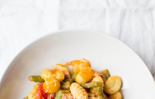 danke für Eure lieben Kommentare zu meinen letzten Posts. Ihr seid großartig! Ich bin froh so wundervolle Leser wie Euch zu haben. Heute zeige ich Euch unser Abendessen von gestern. Es gab Gnocchi mit grünem Spargel. Viel Spaß beim Nachkochen!