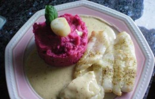 Zutaten für Personen Rezept mit Bild: Fisch: Heilbutt mit Kartoffel-Rote Bete Stampf Bild einstellen 350 g Heilbuttfilet 6 Jakobsmuscheln ein wenig Rosmarin und Oregano für die Pfanne Salz Fischgewü [...]