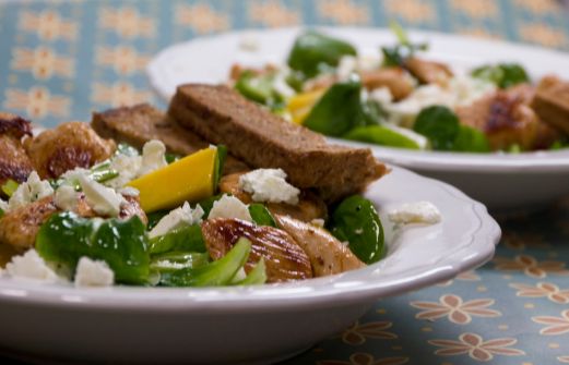 Habt ihr auch so viel und ausgiebig gegessen über die Feiertage? Ich schon, daher ist es an der Zeit mal wieder etwas gesünder zu leben. Heute gibt´s bei mir also einen leckeren Feldsalat mit Mango, Putenstreifen und Fetakäse. Dazu ein schnell gemachtes Knoblauchbrot, das fast schon süchti [...]