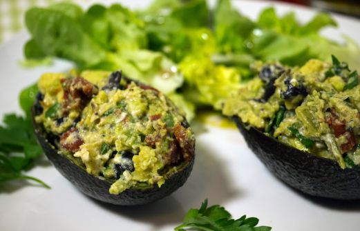 Lecker, leicht und der perfekte Abend-Snack - Avocado mit mediterraner Füllung.