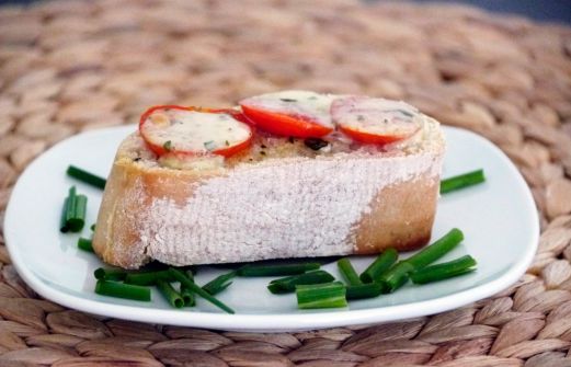 Man nehme: - 1 frisches Baguette - 300 g Tomaten - 200 g Mozzarella - Olivenöl - 1 Knoblauchzehe - Basilikum Das Baguette in Scheiben schneiden. Tomaten und Mozzarella in dünne Scheiben schneiden.