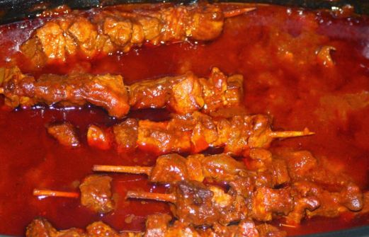 Zutaten: 1 kg Gulasch 2 Zwiebeln 2 EL Öl 1 EL Currypulver 1 EL Paprikapulver, edelsüss 1 EL Paprikapulver, rosenscharf 200g Tomatenmark 500ml Rinderbrühe 400g stückige Tomaten 3 Lorbeerblätter Salz, Pfeffer Muskat Zubereitung: Das Fleisch auf Schaschlikspieße aufziehen, die Zwi [...]
