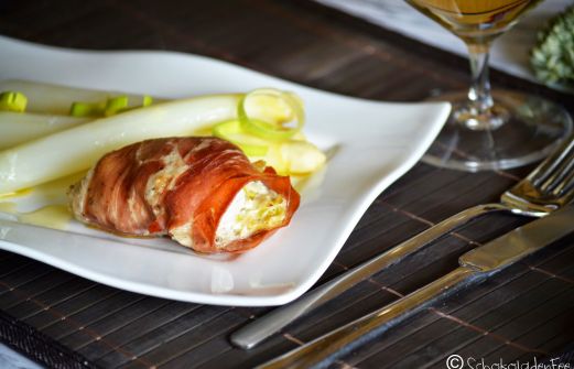 Habe ich euch eigentlich schon gezeig was es bei uns leckeres an Pfingsten zum Mittag gab? Die Käsetorte mit Erdbeeren und Schoki habe ich euch ja letzte Woche gezeigt. Heute kommt nun das leckere Hühnchen im Schinkenmantel.