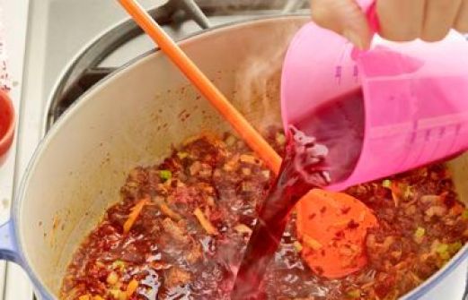 Sauce bolognese Zutaten 1 Zwiebel 1 Knoblauchzehe 1 kleine Möhre 1 Stange Staudensellerie 2 EL Olivenöl 400 g Rinderhackfleisch 2 EL Tomatenmark 250 ml Rotwein (oder Gemüsebrühe) 2 Dosen stückige Tomaten (je 400 g) 1 TL getrockneter Oregano Salz Pfeffer 1 Zwi [...]