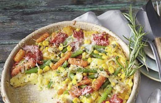 Polenta mit Gemüsekruste Zutaten 2 Zweige Rosmarin 300 ml Gemüsebrühe 300 ml Milch 125 g Instant-Polenta (Maisgrieß) 2 Eier 180 g geriebener italienischer Hartkäse Salz Pfeffer 2 EL Olivenöl 2 Pck. TK-Provence-Gemüse (à 350 g) 1 EL Butter Öl für die Form 2 Zweig [...]
