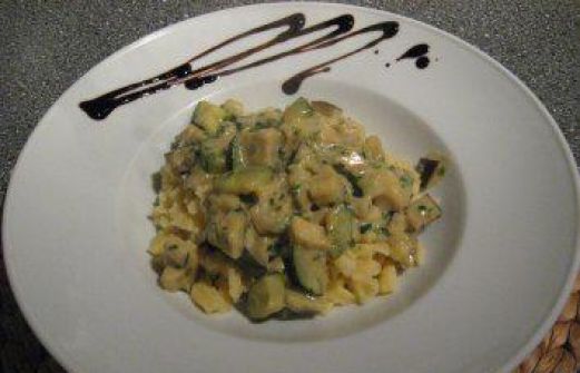 Zutaten für Personen Bild einstellen 250 g Spätzle 1 Aubergine 1 Zucchini 1 kleine Zwiebel 200 ml Weißwein 200 ml Sahne 10% Fett 100 ml Milch 3 El Schnittlauch Tk 2 TL Gemüsebrühe 1 EL Butter Salz, P [...]