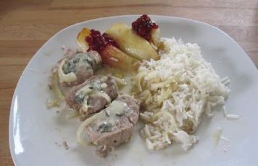 Zutaten für Personen Rezept mit Bild: Schweinefilet mit Gorgonzola und Birnen Bild einstellen 600 g Schweinefilet 4 Birnen 50 g Gorgonzola oder Blauschimmelkäse 1 Zwiebel 100 ml Weißwein, Riesling oder S [...]