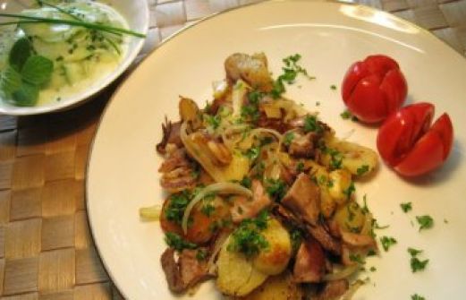 Zutaten für Personen Rezept mit Bild: Tiroler Herrengröstl - heute mal mit Entenfleisch ... Bild einstellen 0.5 Ente gegart 4 Pellkartoffeln vom Vortag 2 Esslöffel Butterschmalz 2 grosse Zwiebeln P [...]