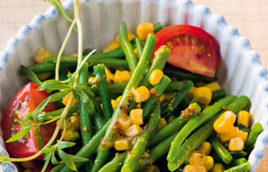 Bohnensalat mit Mais Zutaten Salz 300 g TK-Prinzessbohnen 1 Zweig Bohnenkraut 2 EL Weißweinessig 2 TL körniger Senf Pfeffer 2-3 EL Olivenöl 150 g kleine Strauchtomaten 1 Dose Maiskörner (140 g Abtropfgewicht) 1 Schalotte Salz , 300 g TK-Prinzessbohnen , 1 [...]